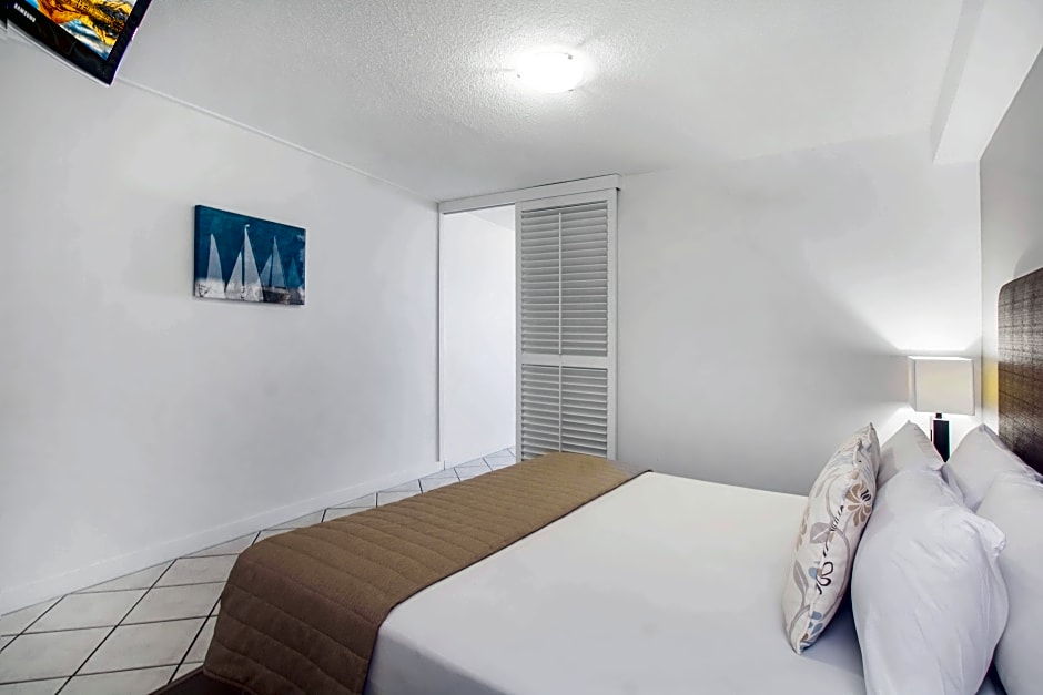 This spacious suite features a private balcony offering ocean views. It offers a 2-person spa bath, a fully equipped kitchen and laundry facilities.